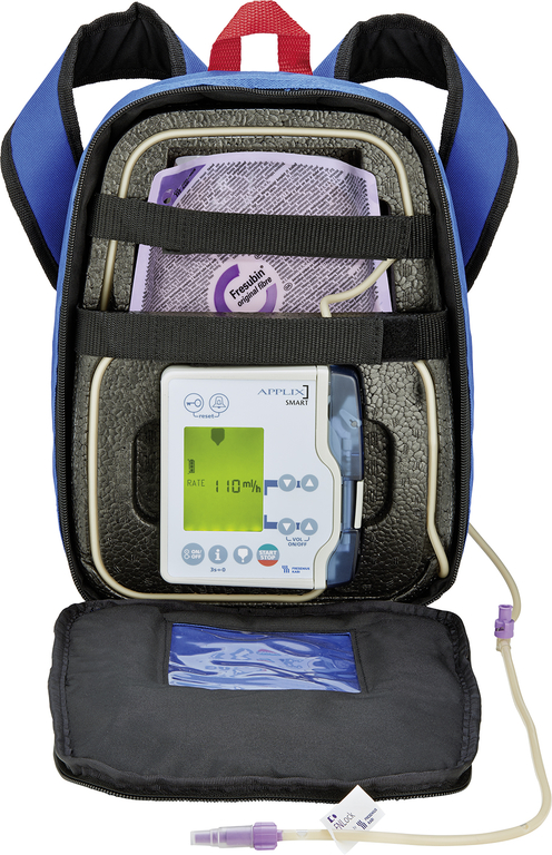 Kombiniert werden kann die PEG beispielsweise mit einer elektrischen Nahrungspumpe. Diese ist besonders hilfreich, wenn das Kind Nahrung nur sehr langsam verträgt. Über die Pumpe lässt sich einstellen, in welchem Zeitraum die Nahrung verabreicht werden soll — von einer langsamen Dauergabe über mehrere Stunden bis hin zu einzelnen Bolusgaben, die einer normalen Mahlzeit ähneln.